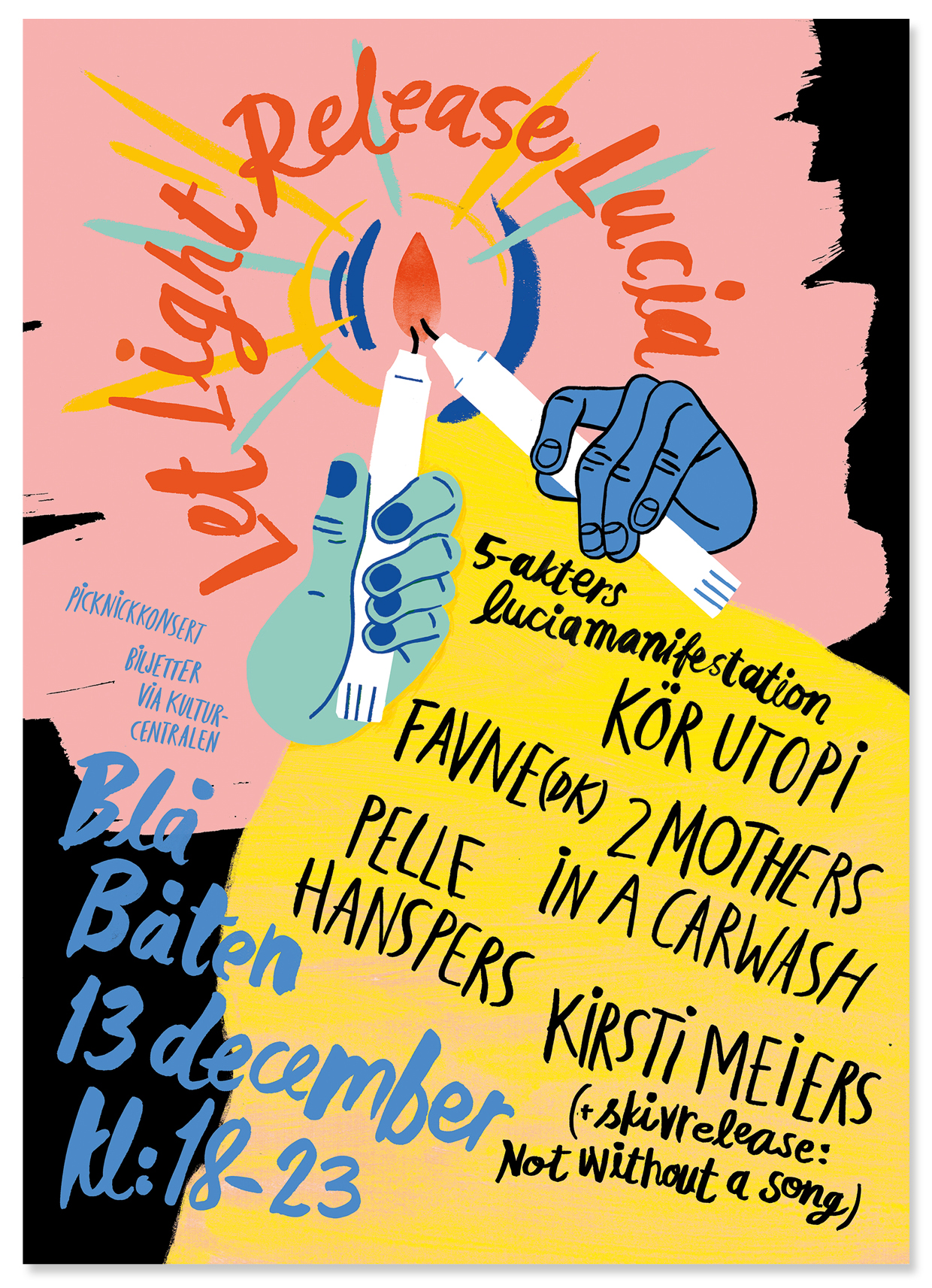 Poster design for Let Light Release Lucia, a five act concert on a boat in Malmö on Saint Lucy’s Day. Client: musician Kirsti Meiers.