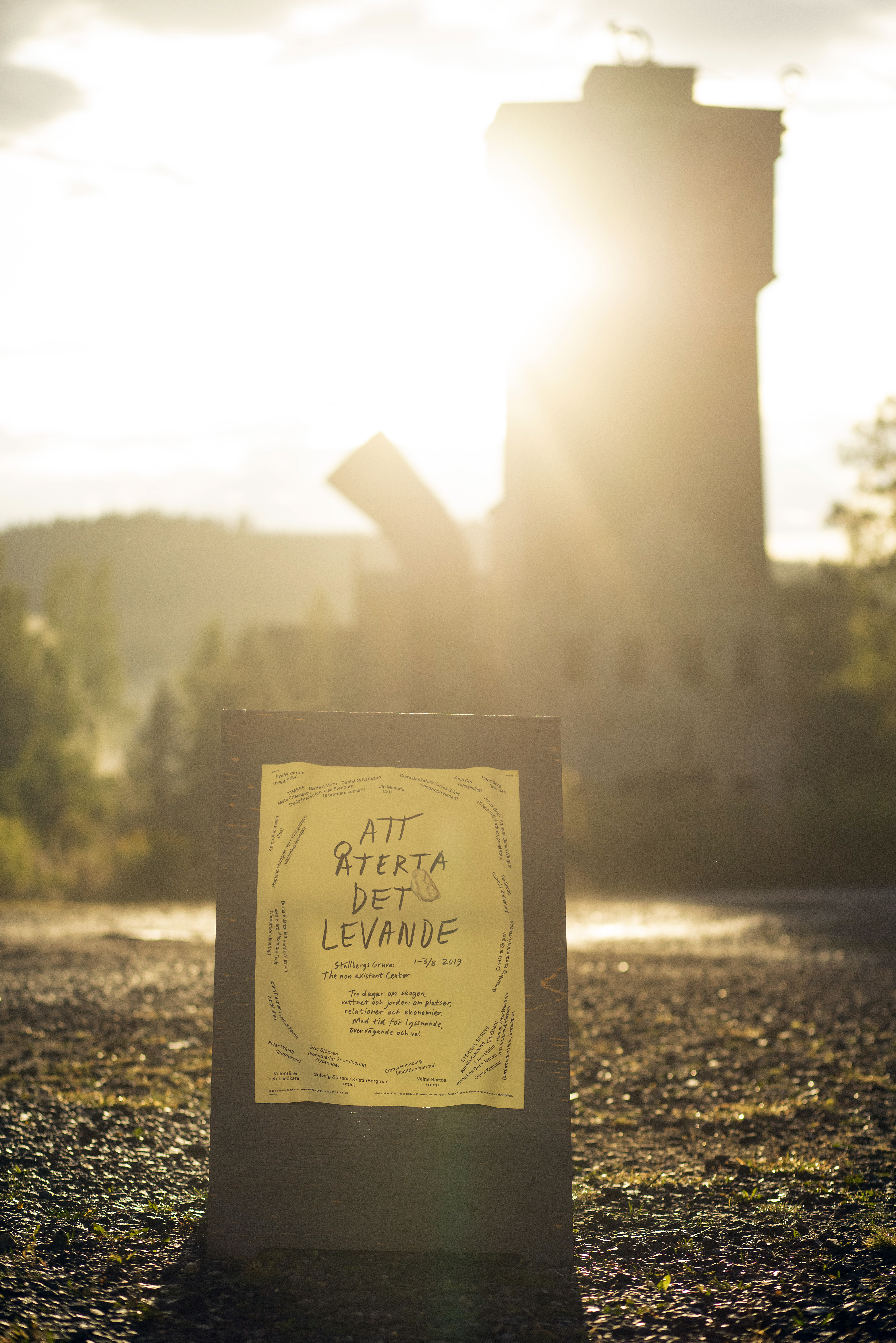 Affisch till en tre dagar lång festival med fokus på mänskligheten och planetens resurser i antropocen. Programmet innehöll samtal, musik, poesi, politisk diskussion, konst, vandring och stillhet. Ställbergs Gruva är ett kulturcenter i en nedlagd järnmalmsgruva i Bergslagen. Verksamheten drivs sedan 2012 av föreningen TNEC.