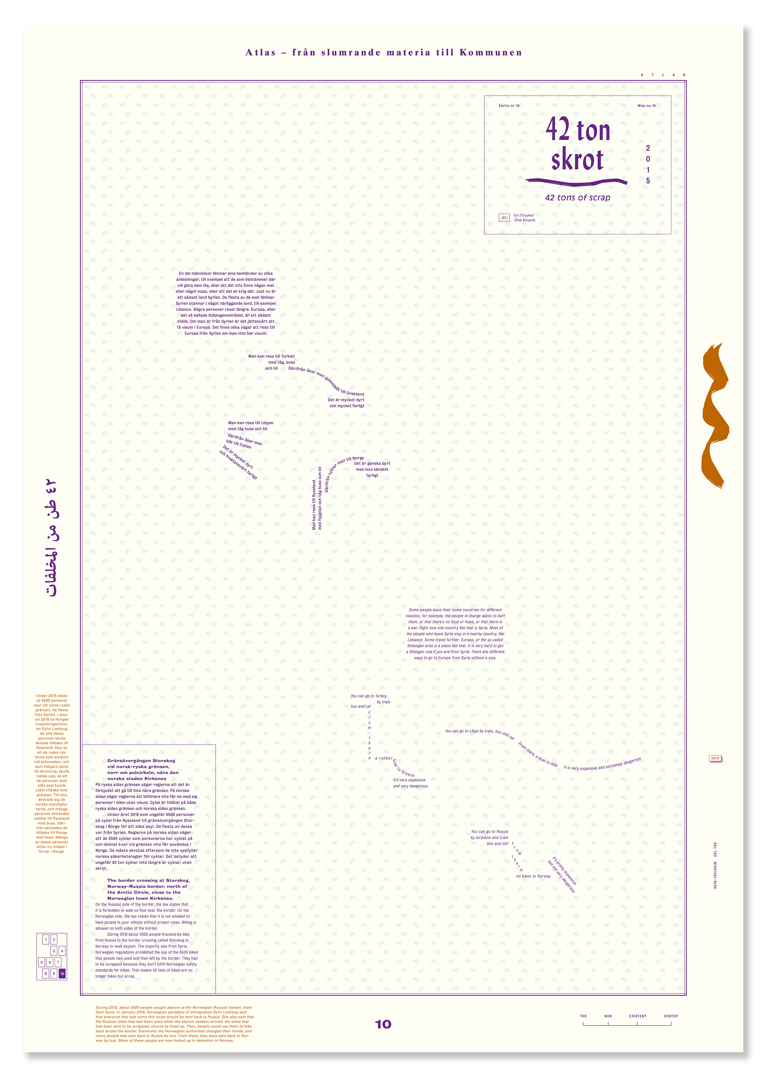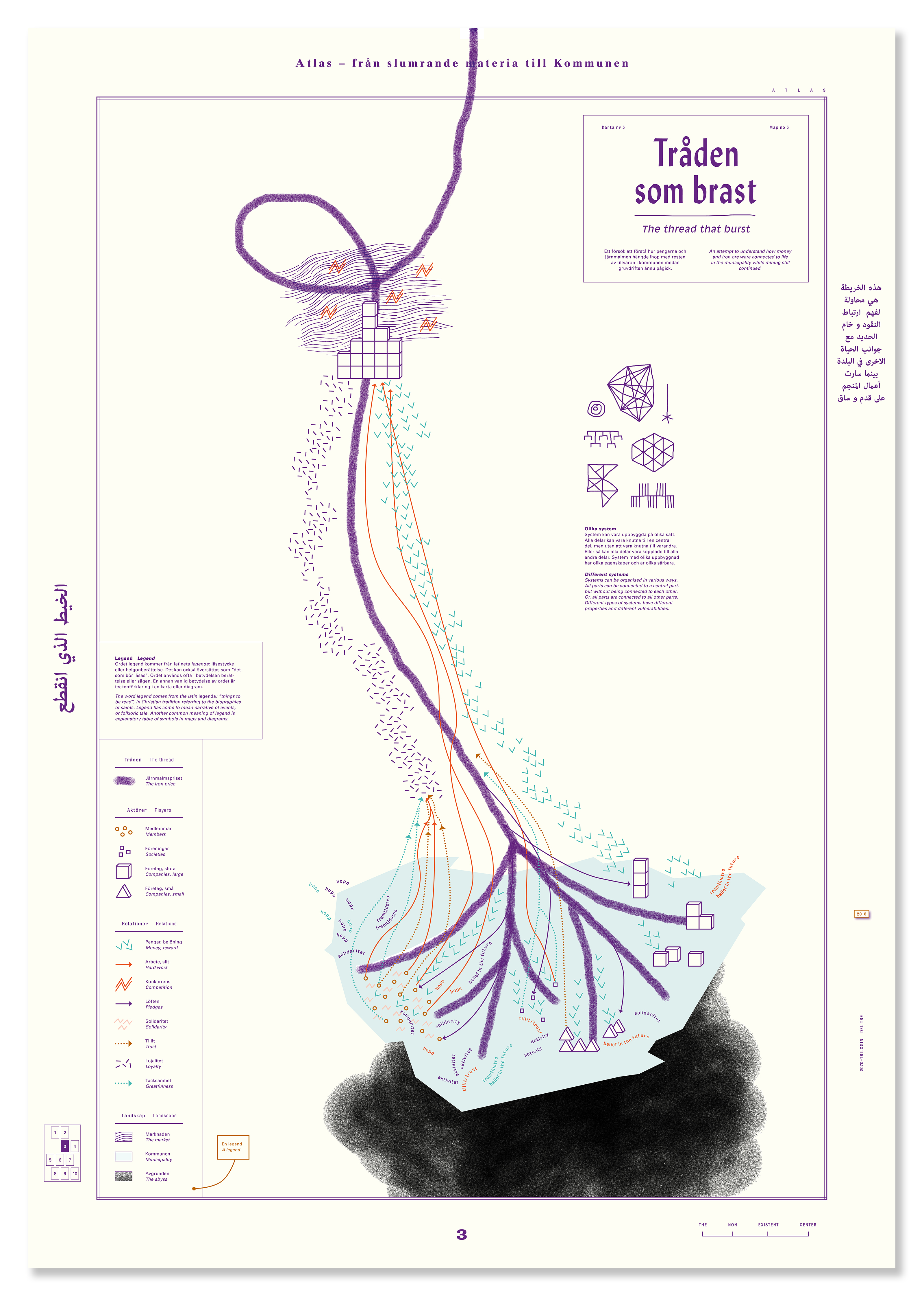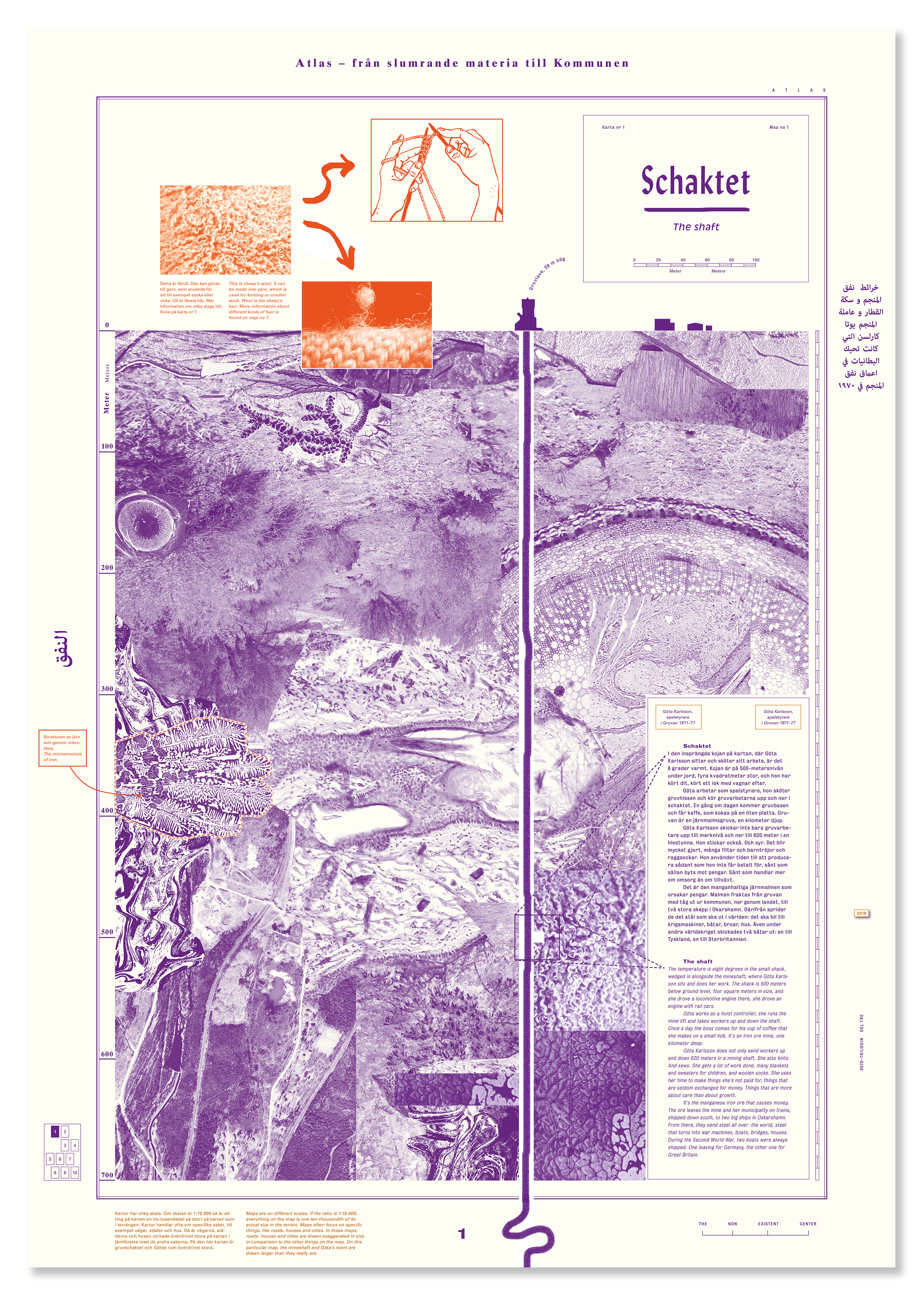 Poster design for the exhibition Atlas. Från slumrande materia till kommunen. The exhibition was produced by the business association TNEC who run the cultural center Ställbergs Gruva, an abandoned iron ore mine in Bergslagen, Sweden. It was exhibited at Ställbergs Gruva and also as part of Malmö Konstmuseum’s exhibition Samhällsmaskinen (The Society Machine. The Industrial Age from the Perspective of Art). Photo: Veine Bartos (image 9–10).