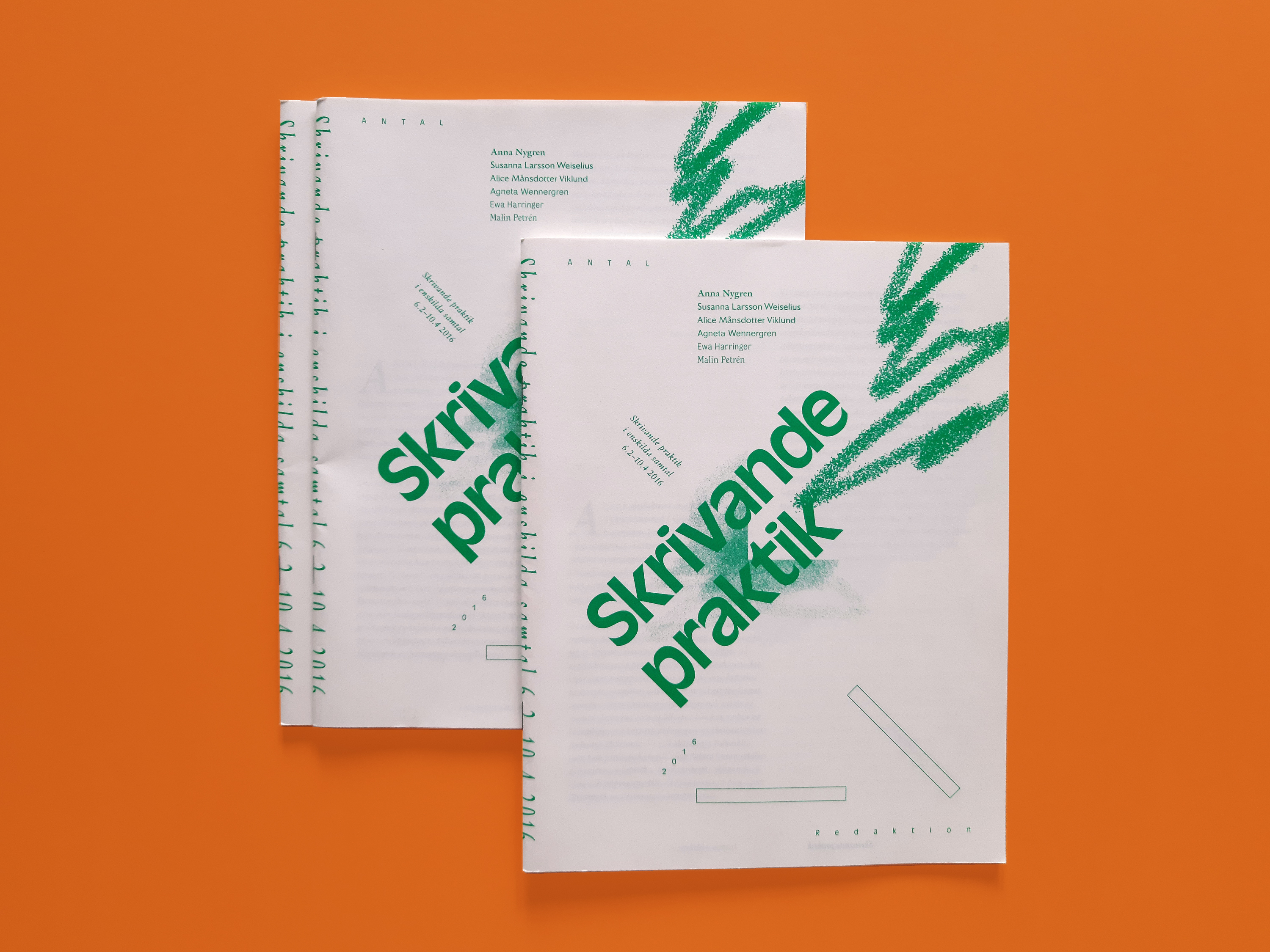 Del två i en serie publikationer för projektet Skrivande praktik som drevs av ANTAL Redaktion i Göteborg. Projektet erbjöd enskilda textsamtal och publicering av texter.
